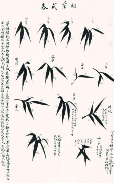 《卢坤峰墨竹要述》则拆解画竿的“乙字笔法”、画节的“横弧画法”、画叶的“个”“介”“女”字等叠法,还特别标注不同竹类的画法差异,如粗毛竹竿节“中间长、两头短”,鸡毛竹“枝短叶小、略呈‘之’字盘曲”,避免学习者混淆。