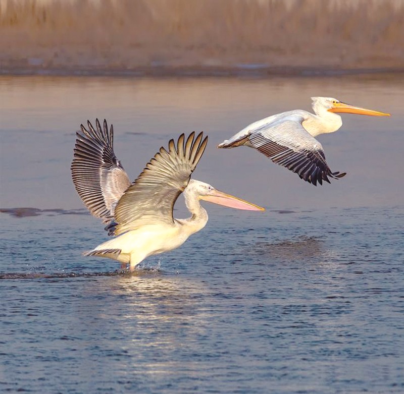 白鹈鹕的翅膀强壮有力,能把庞大身躯轻易地送上天空。还会利用热气流,像鹰和兀鹫一样自由翱翔。迁徙季节,甚至可以“超长续航”,持续飞行24小时。