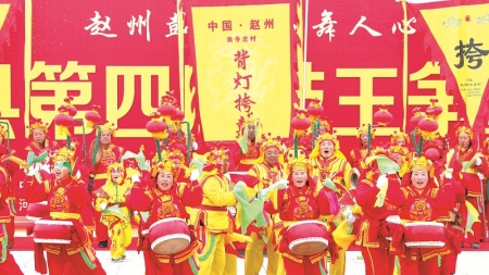 鼓声乍起,如春雷滚过天际,震颤人心。鼓手们双臂挥舞,鼓点铿锵,时而如万马奔腾,气势磅礴;时而如细雨润物,节奏明快。一招一式间,尽显精湛技艺与满腔豪情。那跃动的身影、专注的神情,将民间艺术的粗犷与细腻演绎得淋漓尽致。掌声和喝彩声一浪高过一浪,整个广场沉浸在一片欢腾的海洋中。鼓声穿越人群,穿越街巷,穿过赵州桥的石板,仿佛也穿越了千年时光——将元宵的灯火、赵州的文脉,一声一声,敲进每个人的心里。