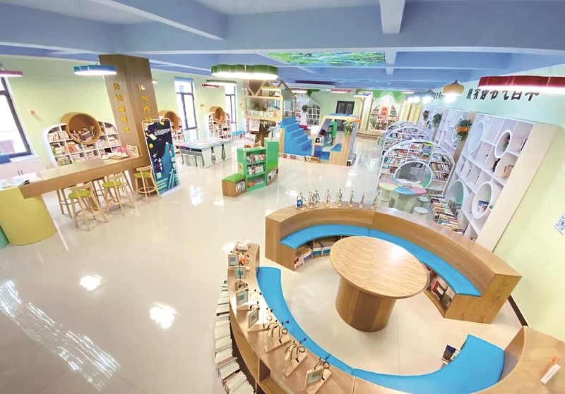 博雅书馆的懒人沙发、阅读攀爬区等为不同学段学生打造了富有童趣与探索感的阅读角落,让阅读成为一种充满乐趣的体验。雅读厅内设置了舒适的阅读沙发、原木色书架和柔和灯光,墙面装饰着学生的阅读手抄报和名家名言,营造出温馨的阅读氛围。各楼层的四季书吧则根据不同季节主题进行布置,“春天书吧”摆放着鲜花绿植与绘本读物;“夏天书吧”陈列着风铃与科普书籍;“秋天书吧”搭配落叶装饰与文学名著;“冬天书吧”则以暖色调为主,搭配经典童话书,让学生在不同的季节都能感受到阅读的美好。