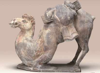 此陶骆驼是一只跪驼,是北朝皇陵陪葬品中的艺术极品,代表了北朝时期陶塑艺术的最高成就。从神态上看,骆驼动中含静,静中蓄动;从造型上看,左前腿跪,右前腿蹬,首翘昂,目眺视,作旅途憩息状。在骆驼的驼背上,驮有皮囊、酒壶、大雁、丝绸、瓷器等。古人云:“驼卧,腹不贴地,屈足漏明,则行千里。”这是具有丰富生活经验的陶塑匠师着意塑造的良驼像。它不仅是一件珍贵的历史文物,也是当时丝绸之路东西方经贸往来的见证者、文明的传递者。